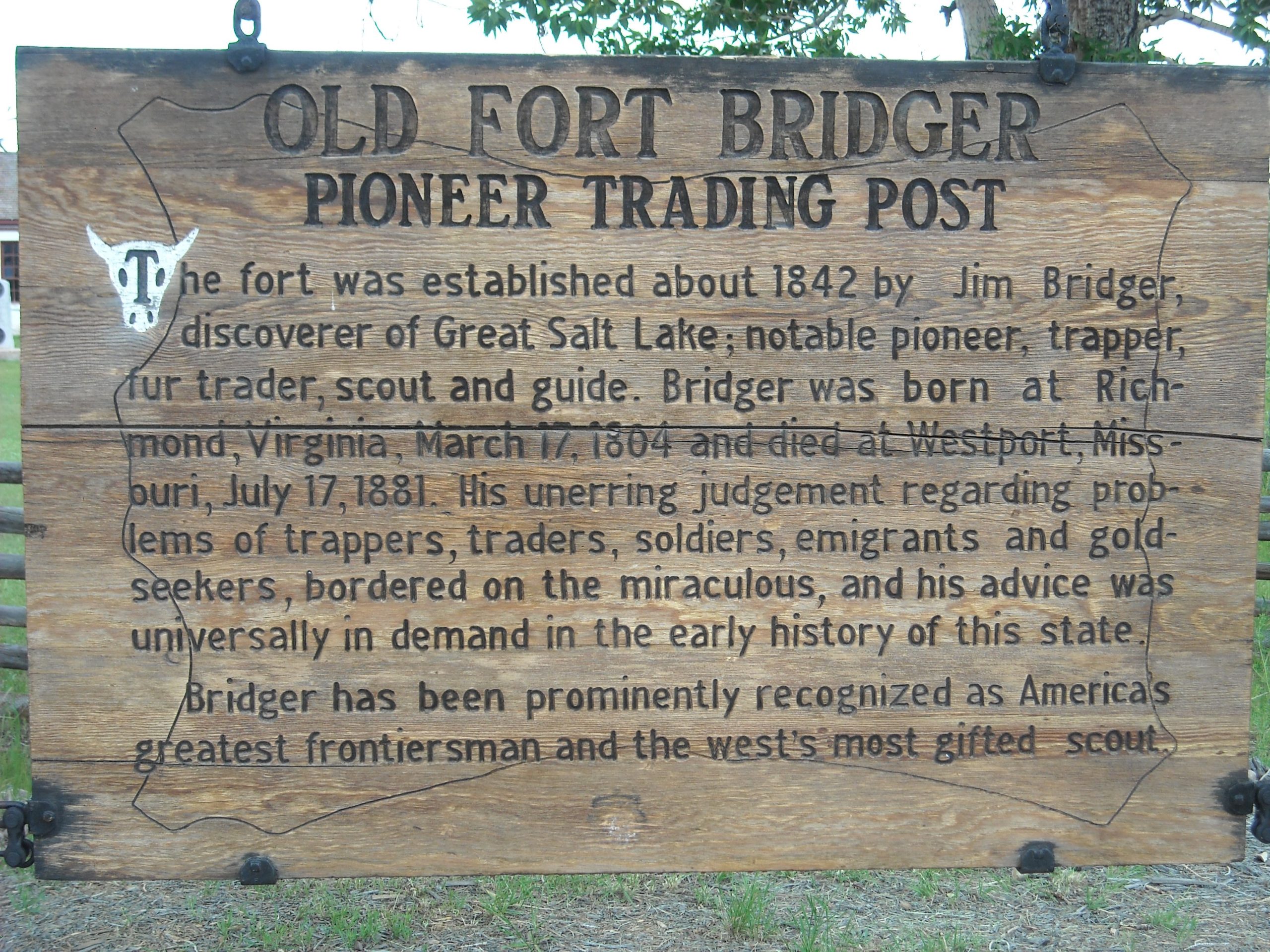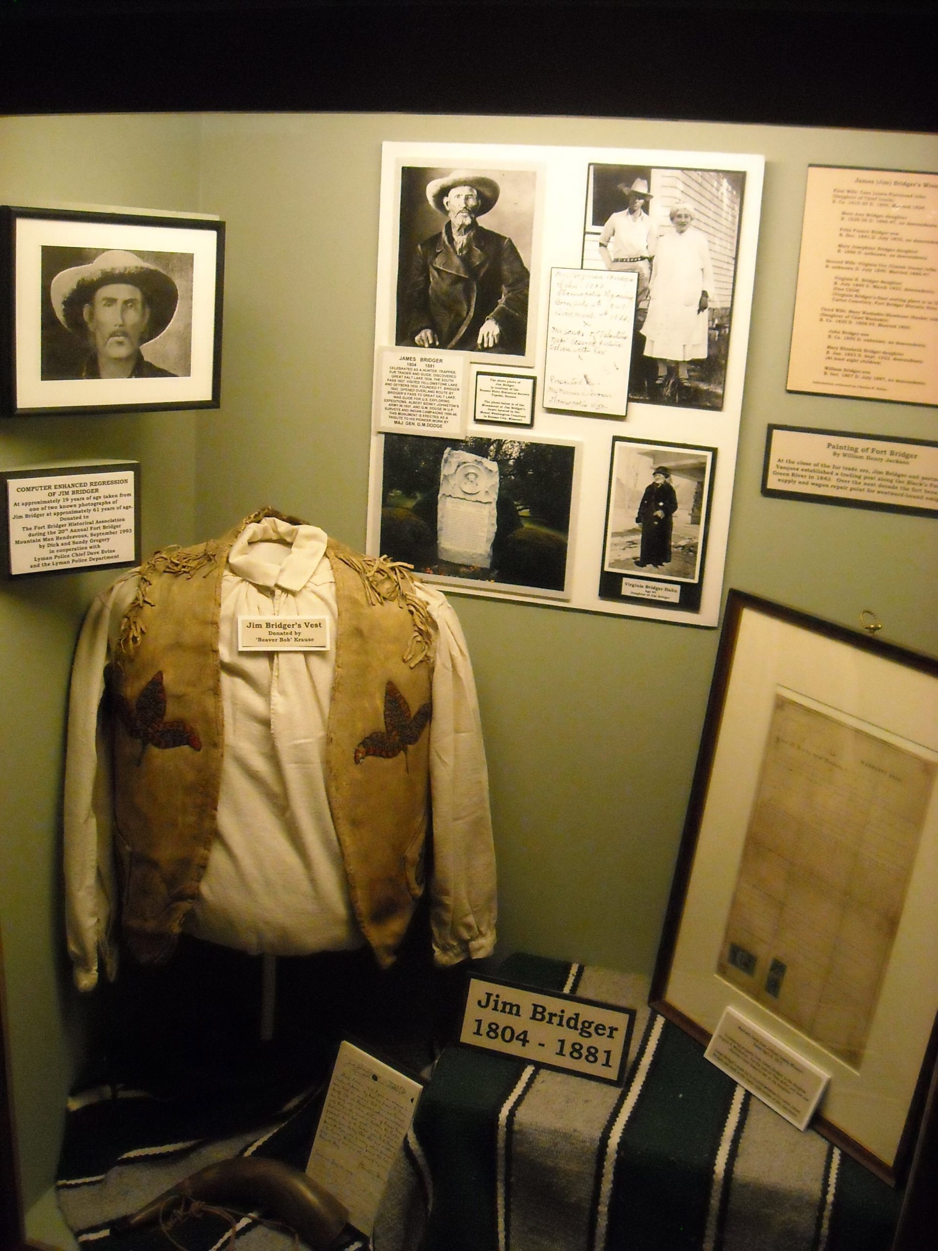 The Bridger Family reunion was held from July 7 to 10, 2011, at Fort Bridger in Wyoming, which was built in 1843 by our cousin Jim Bridger. It was an exciting trip for all who attended. Members of the Fort Bridger Historical Association gave our members tours of the fort. Members laid a wreath at the grave of Virginia Bridger, daughter of Jim Bridger who was born at the fort in 1849. At the Saturday night dinner meeting, which included buffalo and elk meat, Bobby Bridger entertained the members and “retired his buckskin suit,” donating it to the Museum at Fort Bridger after his performance. Members also enjoyed a full-day trip to the Bridger-Teton National Forest.