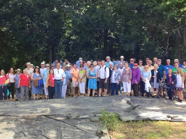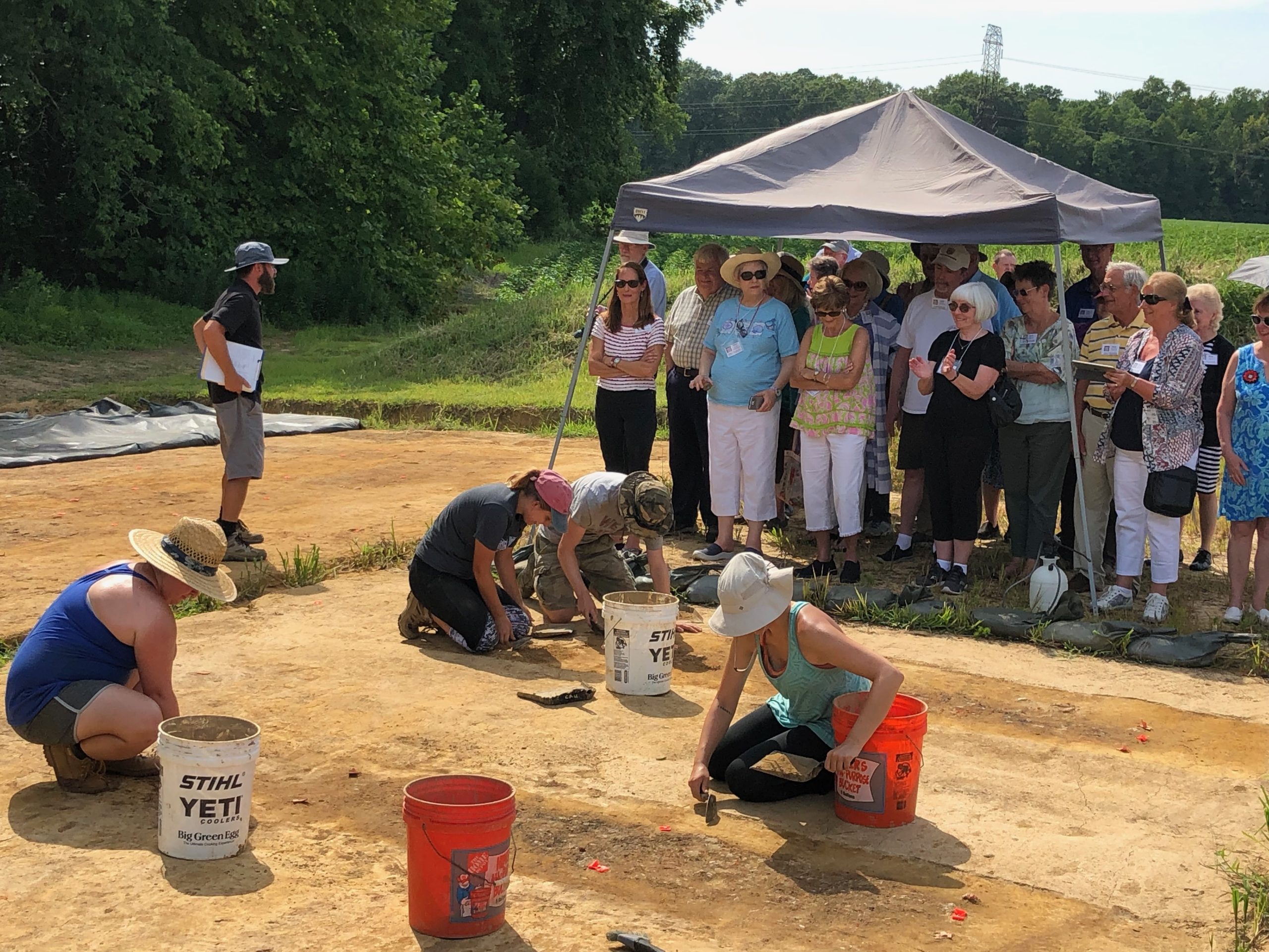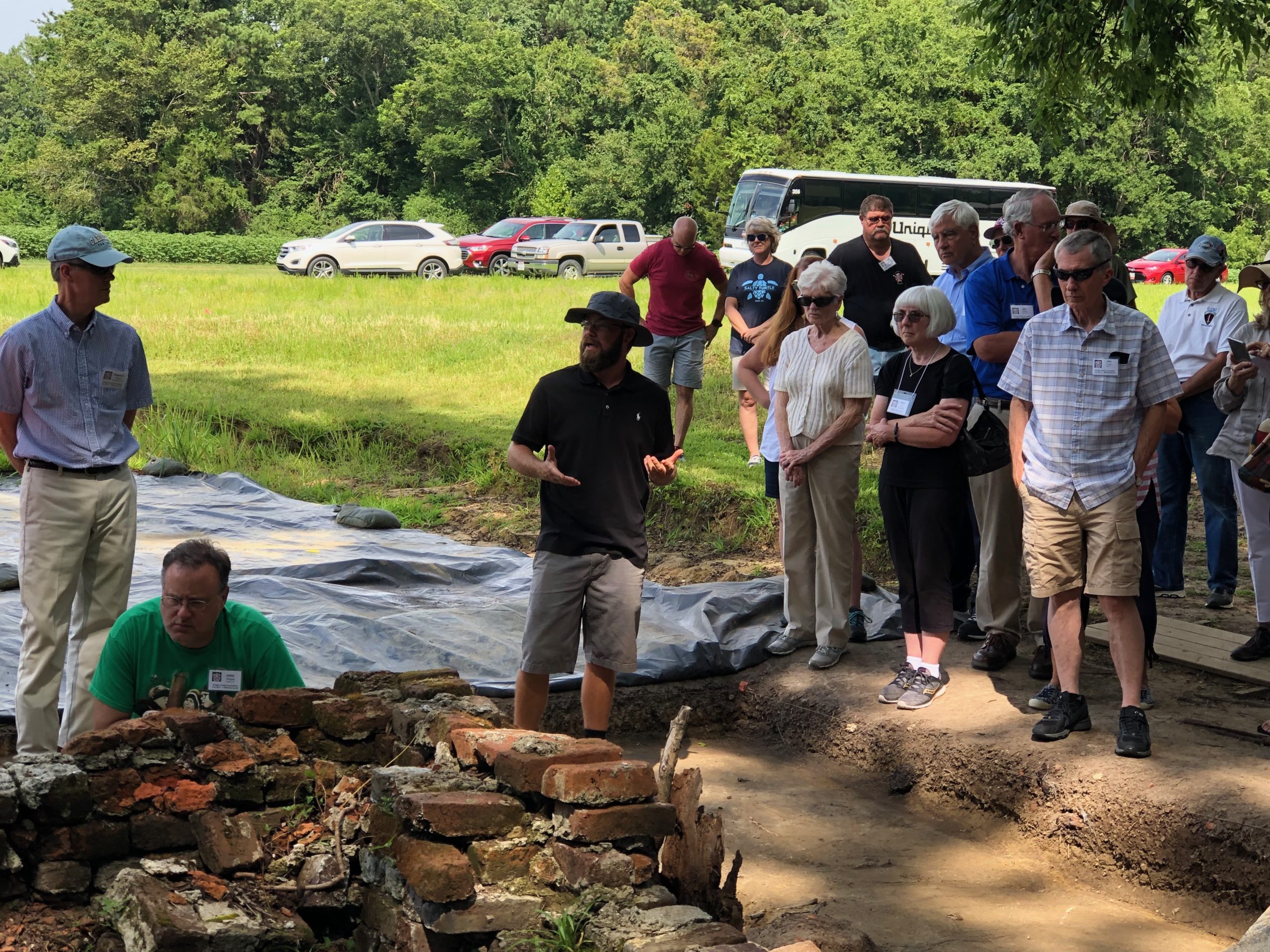 On Friday, more than 50 cousins visited the laboratory at Christopher Newport University in Newport News, Virginia, where Alain Outlaw and his team are cleaning, researching, and cataloging the artifacts that they have found at Whitemarsh. We were able to see and touch items that our Grandparents owned and used almost 360 years ago. The most exciting find was that of a slim piece of lead that was used to hold a window in place. The lead was dated 1678, likely the year Whitemarsh was built. (Read about window leads here.) We then visited the archaeological site at Whitemarsh near Smithfield, Virginia. We ended the day with a barbeque dinner sponsored by Historic St. Luke’s Church Restoration, Inc.