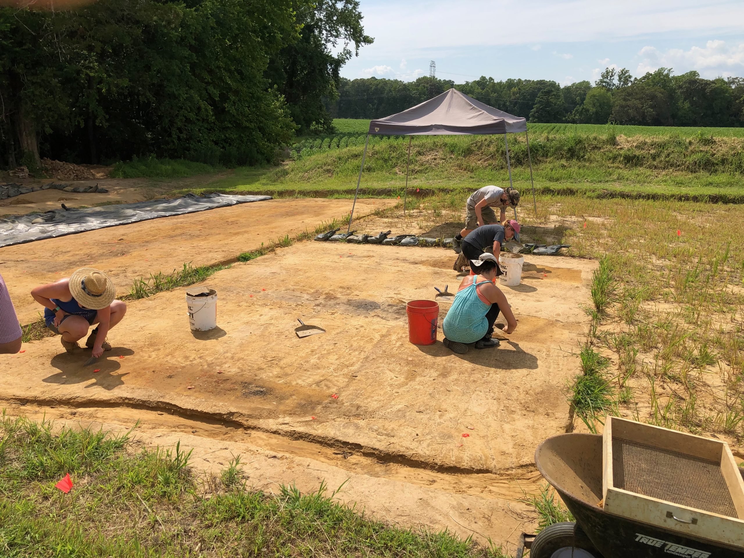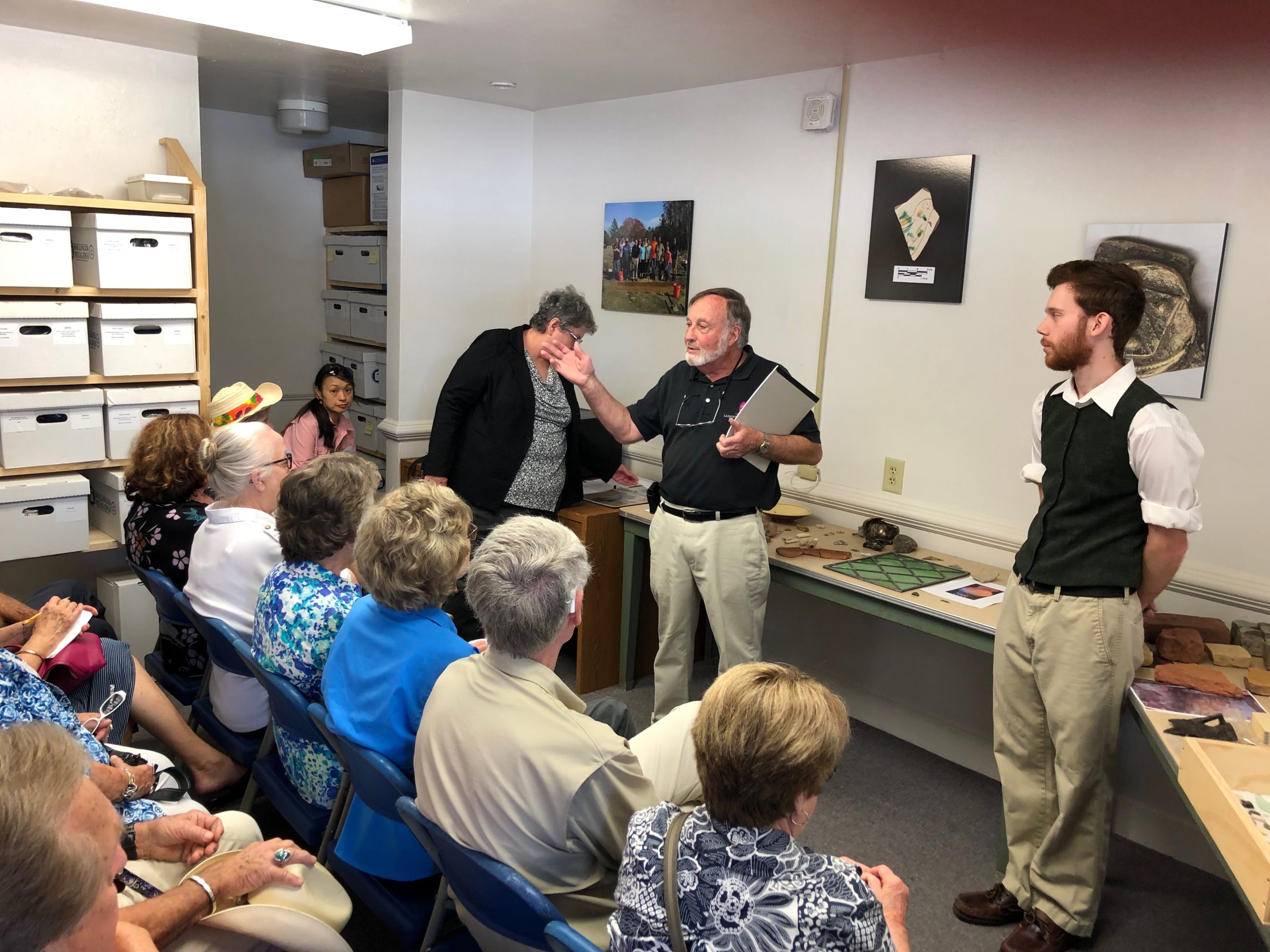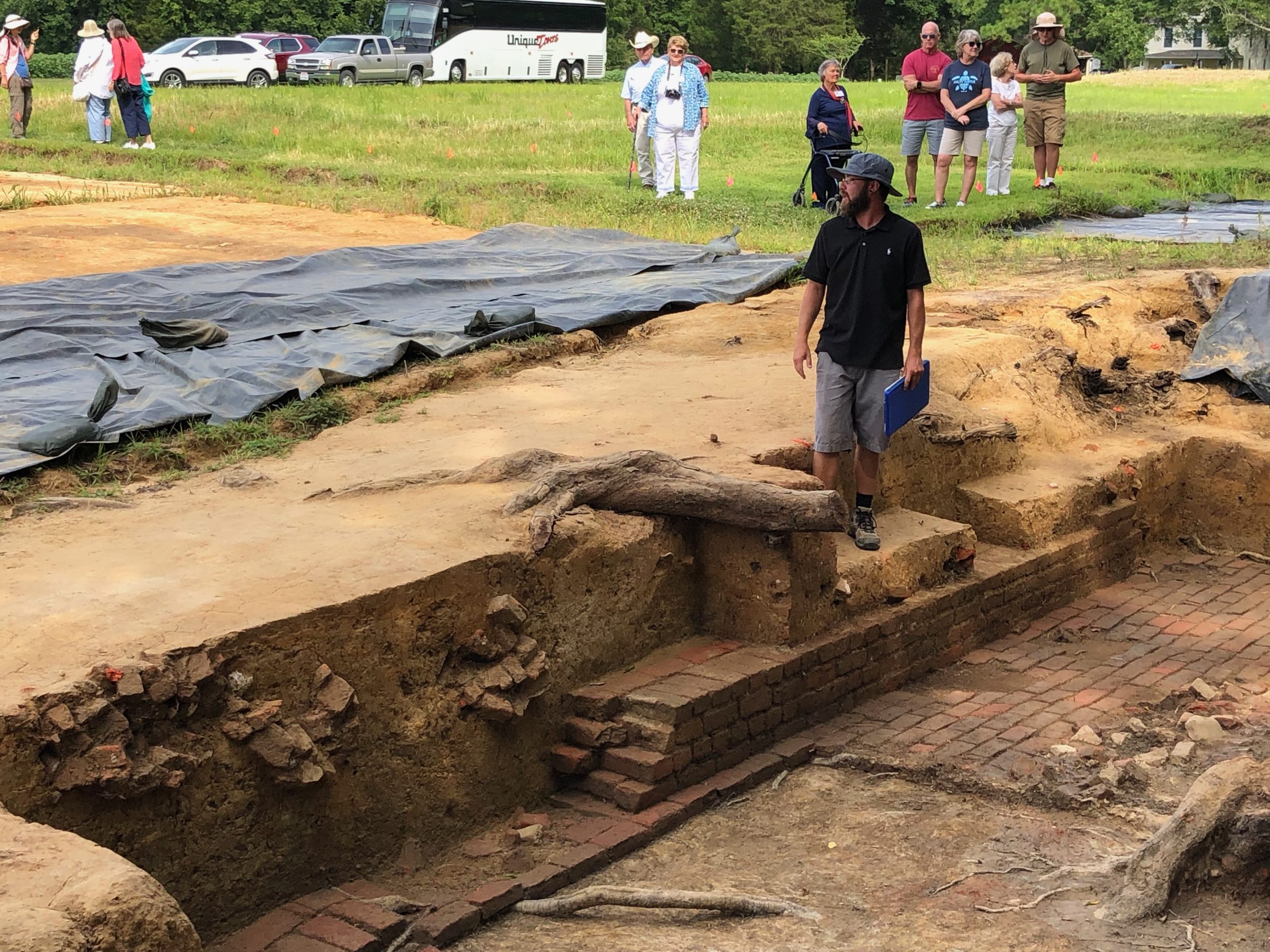 On Friday, more than 50 cousins visited the laboratory at Christopher Newport University in Newport News, Virginia, where Alain Outlaw and his team are cleaning, researching, and cataloging the artifacts that they have found at Whitemarsh. We were able to see and touch items that our Grandparents owned and used almost 360 years ago. The most exciting find was that of a slim piece of lead that was used to hold a window in place. The lead was dated 1678, likely the year Whitemarsh was built. (Read about window leads here.) We then visited the archaeological site at Whitemarsh near Smithfield, Virginia. We ended the day with a barbeque dinner sponsored by Historic St. Luke’s Church Restoration, Inc.